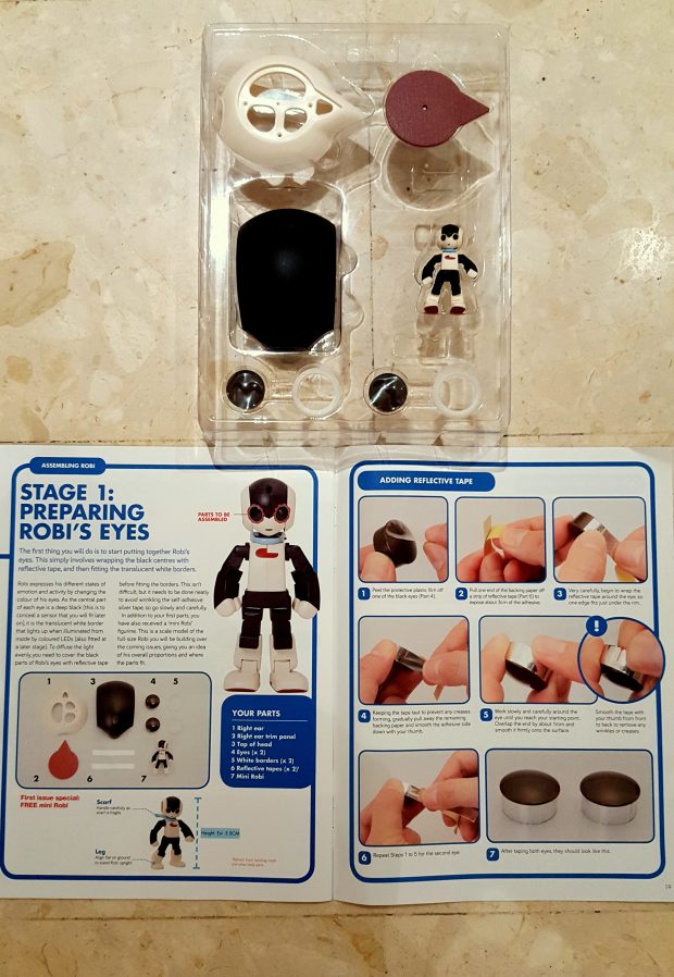 Well, so far this sounds like a fun toy. But there’s more! Professor Tomotaka’s aim was to forge closer relationships, and specially for Singapore, he is on a mission: Assemble Robi, Unite a Family! You can build Robi on your own! It is available in parts, found in a weekly educational magazine Robi. Yup! Each issue contains educational materials to teach the kids about robotics, in the simplest and most interesting way. With it, there are parts to assemble Robi (with REALLY easy-to-follow pictures and instructions).