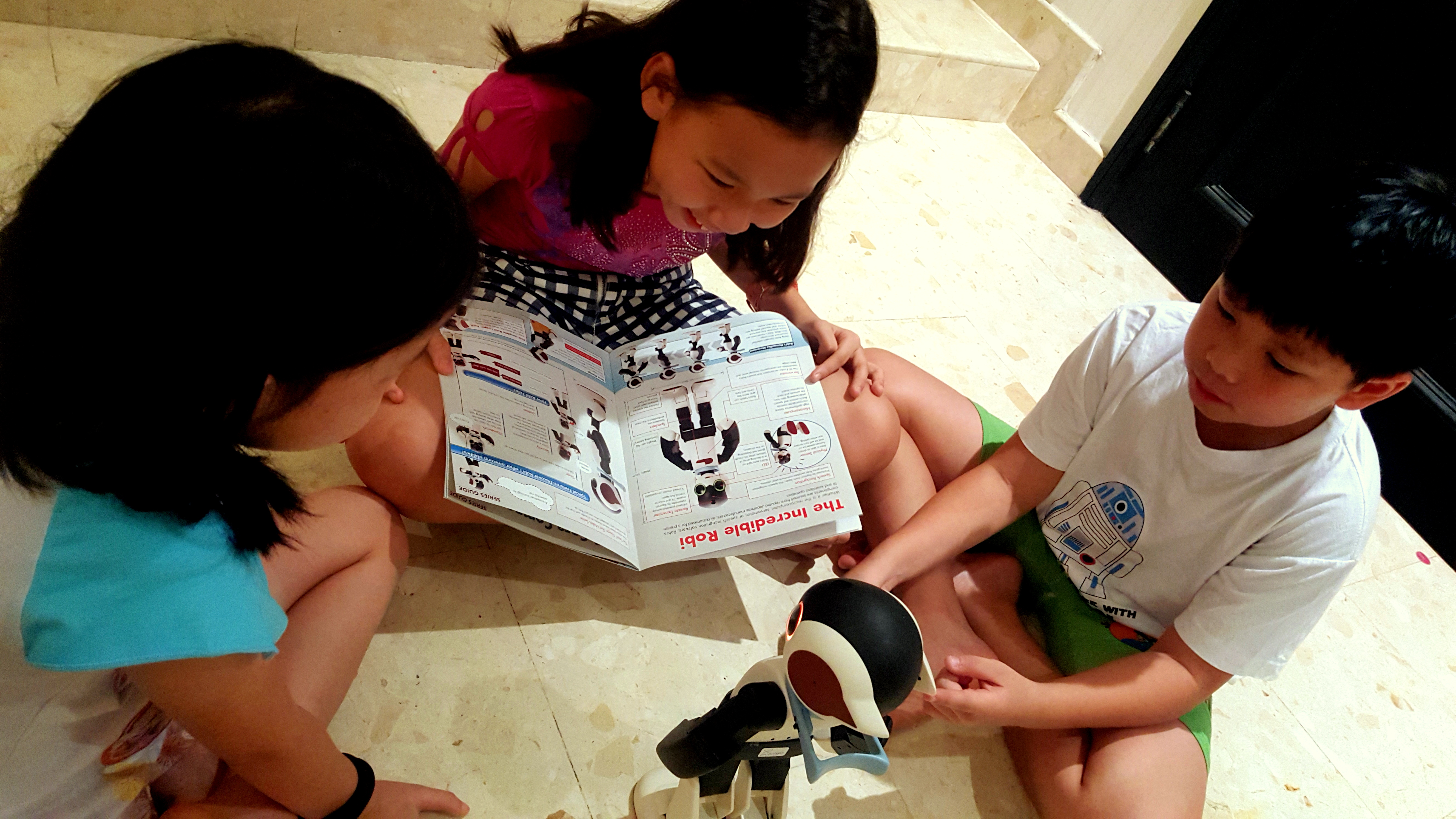 Robi is so so cool! He could reply us when we ask him what is his name, he would do sit-ups and invite us to do it alongside him! We weren’t sure how Robi works or what can he really do, so we constantly referred to the educational magazine Robi for advice and instructions.