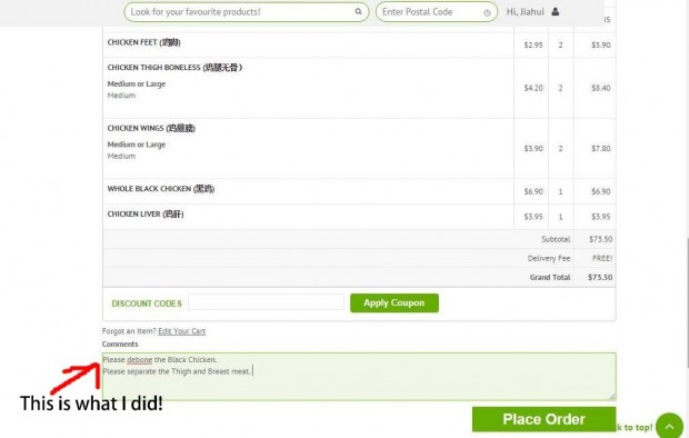But what made it more interesting is when you can order the entire chicken, and under remarks, leave your comments regarding how you want the meat!